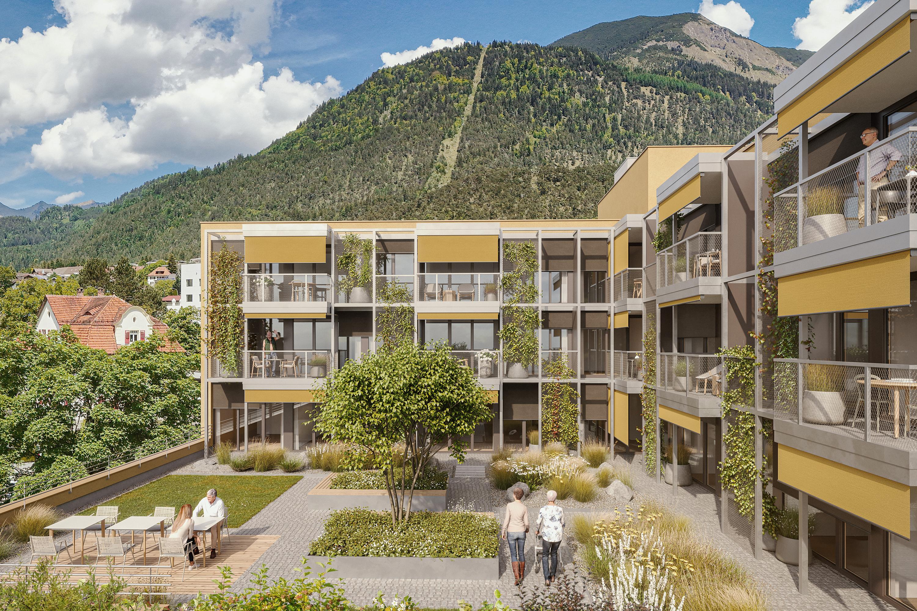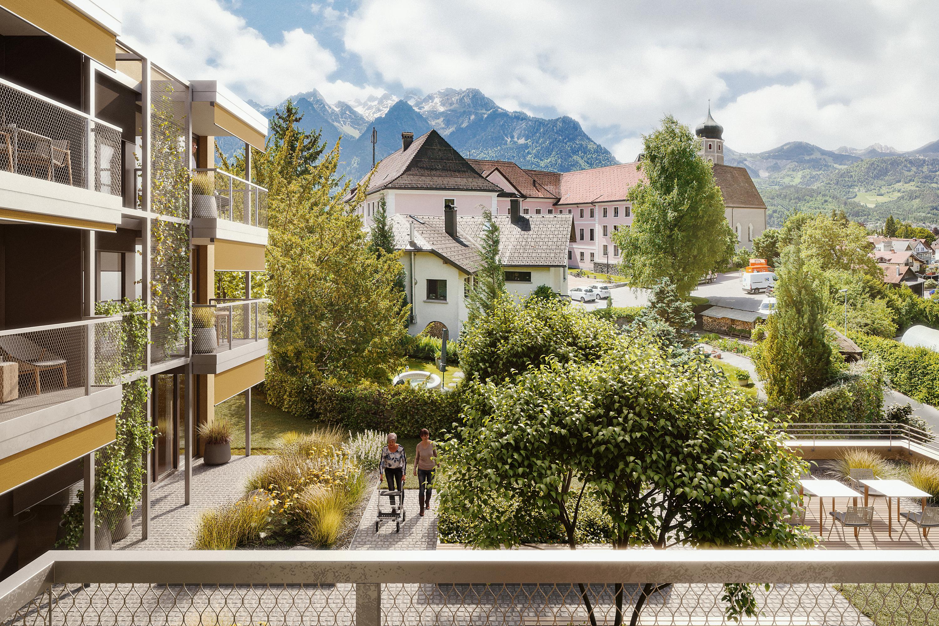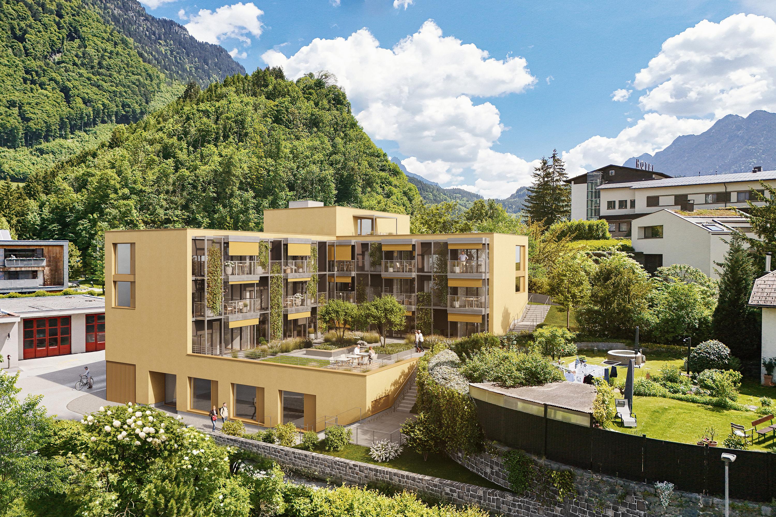 „Am Schlossplatz“ in unmittelbarer Nähe zum Schloss Gayenhofen und zur Pfarrkirche St. Laurentiuns in Bludenz verortet, liegt das Projekt in zentraler Lage der Alpenstadt und zugleich erhöht über der historischen Altstadt. Die Nachbarschaft zu sozialen Einrichtungen – darunter Krankenhaus und Pflegeeinrichtungen – schafft ideale Voraussetzungen für betreubares Wohnen.